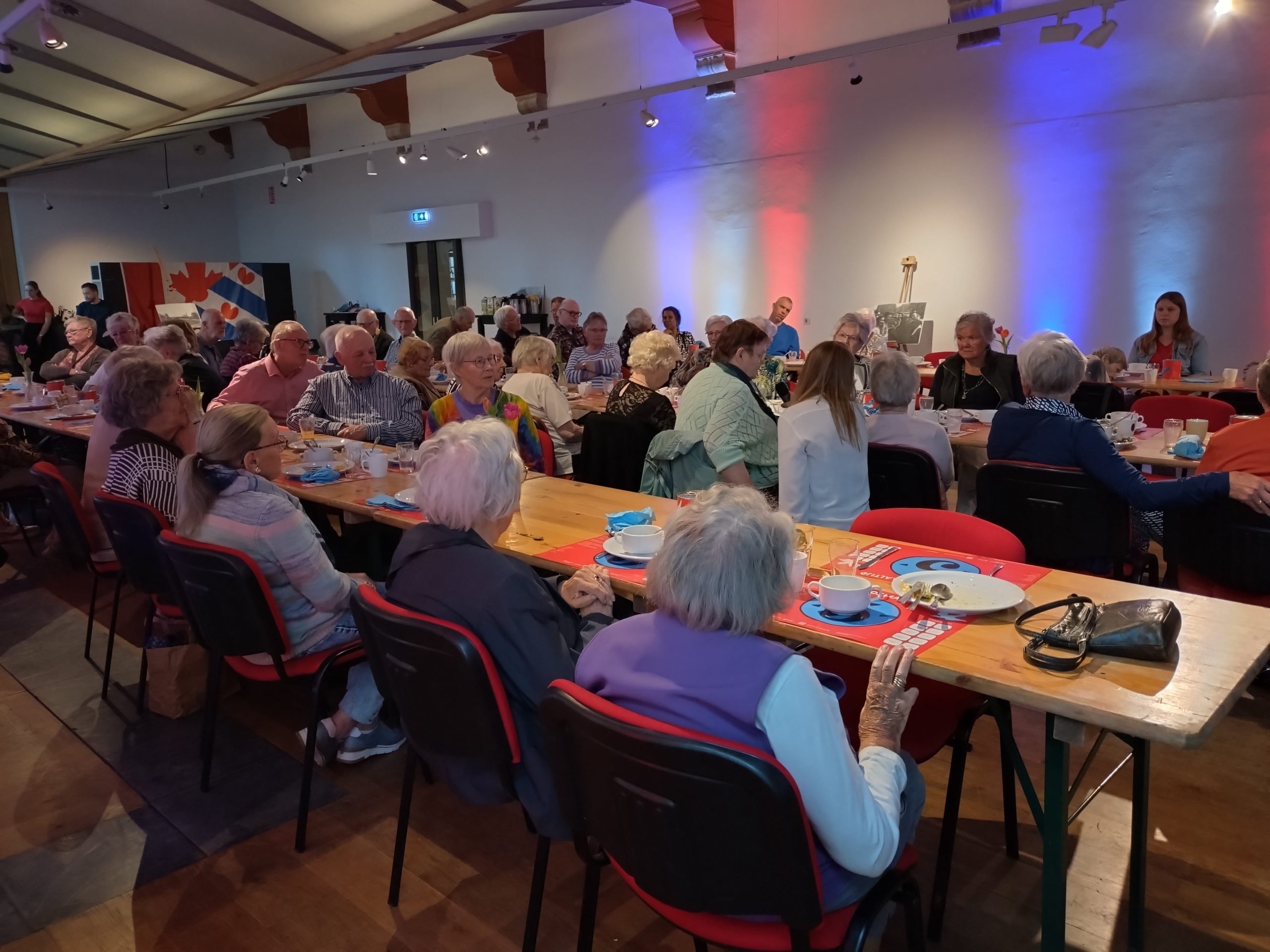 De zaal zag er prachtig uit alles in de 5 mei stijl. Er waren authentieke beelden van de