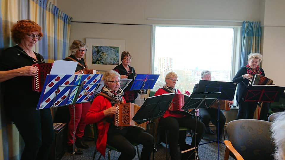 Op 5 februari 2020 organiseerde Stichting Bezoek&Co weer een stamppotbuffet, dit keer voor onze deelnemers. Alex Lubbers van “Eten met gemak” bood drie variaties aan, boerenkool, hutspot en zuurkool. De bovenzaal van Aldlânstate was helemaal volgeboekt, want je krijgt niet vaak de gelegenheid om drie soorten stamppot op één dag te eten. De meeste belangstelling was er voor de boerenkool, gevolgd door de hutspot en de zuurkool. Daarbij kwam nog de jus met gehaktballen én rookworst. Om de stemming er nog meer in te brengen was er een optreden van “De Harmoanikaspilers” onder leiding van Janny Boonstra. Een mooi gezelschap bestaande uit acht dames en bekende meezingers zoals over een “stijfselkissie” en een klein cafeetje bij de haven. Eten en meezingen lukte in het begin nog niet zo goed, maar toen iedereen was voldaan, werd er ingehaakt en meegedeind. Volgend jaar maar weer op de agenda zetten en dan hoop ik dat er een beetje vorst bij komt.
