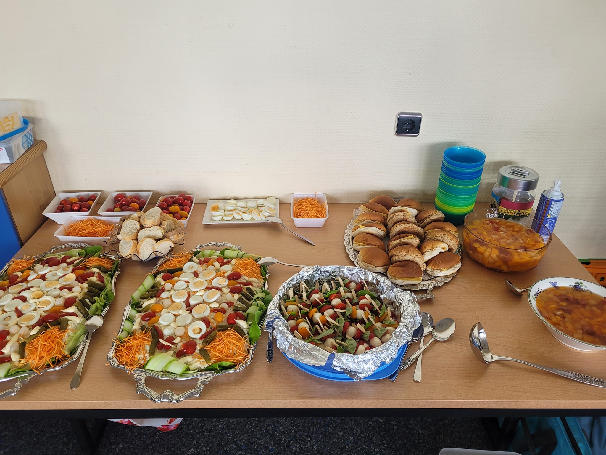 Vervolgens hadden we een lopend buffet met salade, broodjes en fruitbowl. Even wennen
